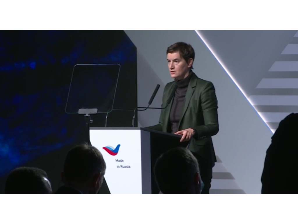 Saradnja sa Rusijom je jaka komponenta razvoja Srbije, rekla je Ana Brnabić, učestvujući na međunarodnom izvoznom forumu „Proizvedeno u Rusiji“.