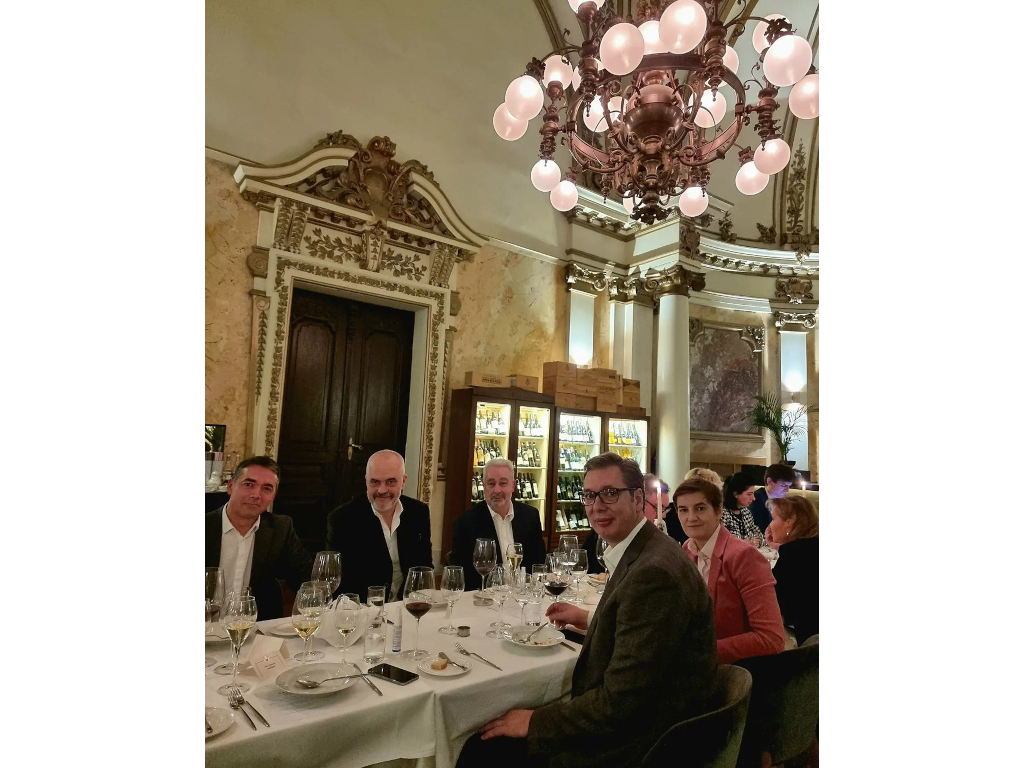 Vučić je u sredu uveče na Instagramu objavio fotografiju iz jednog beogradskog restorana sa Ramom, Dimitrovim i premijerom Crne Gore Zdravkom Krivokapićem i napisao: "Naše prijateljstvo je prijateljstvo za budućnost celog regiona".