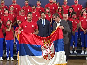 Predsednik Srbije Aleksandar Vučić uručio je danas zastavu reprezentativcima Srbije koji nastupaju na Olimpijskim igrama u Tokiju i poručio da veruje...