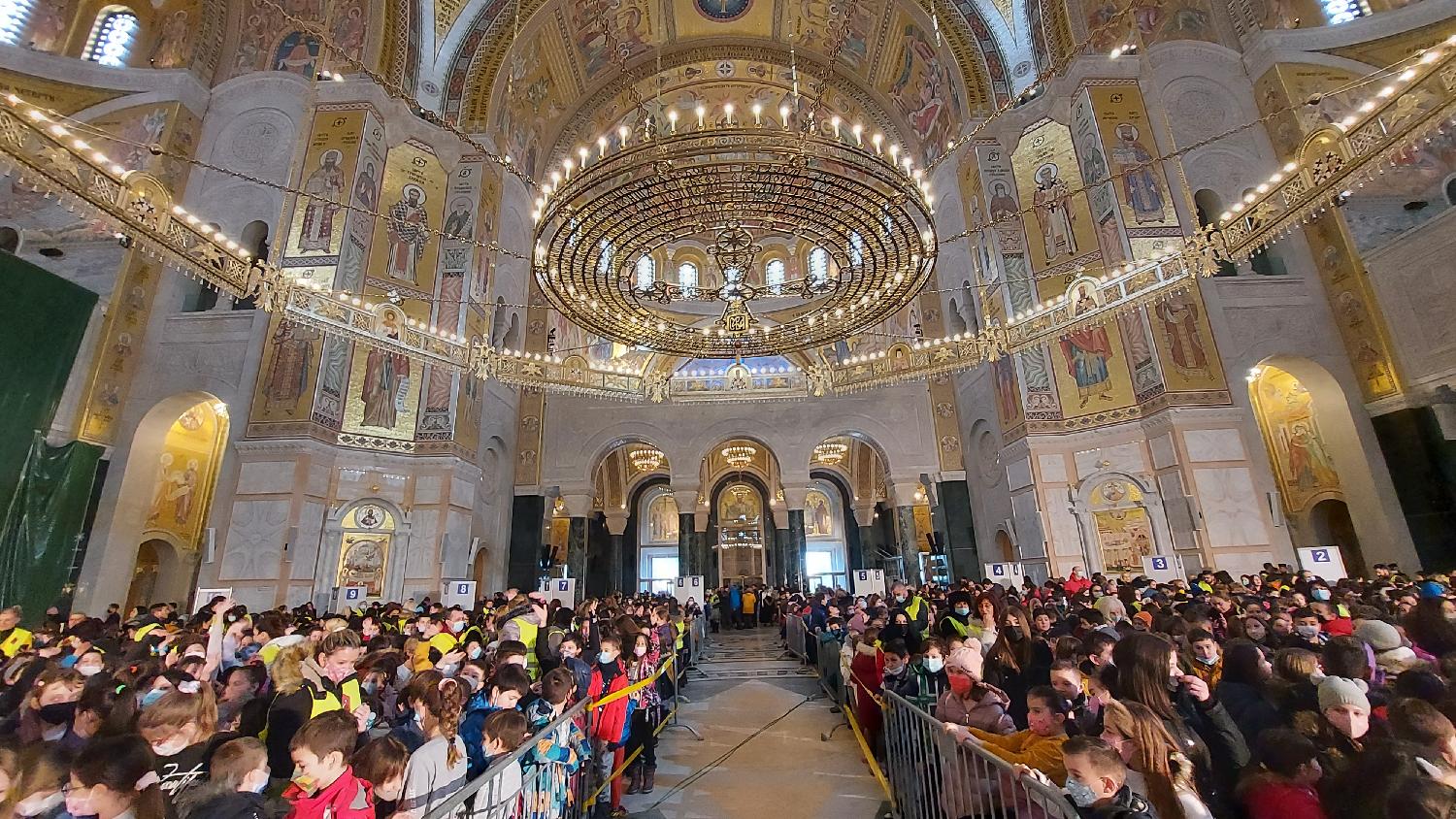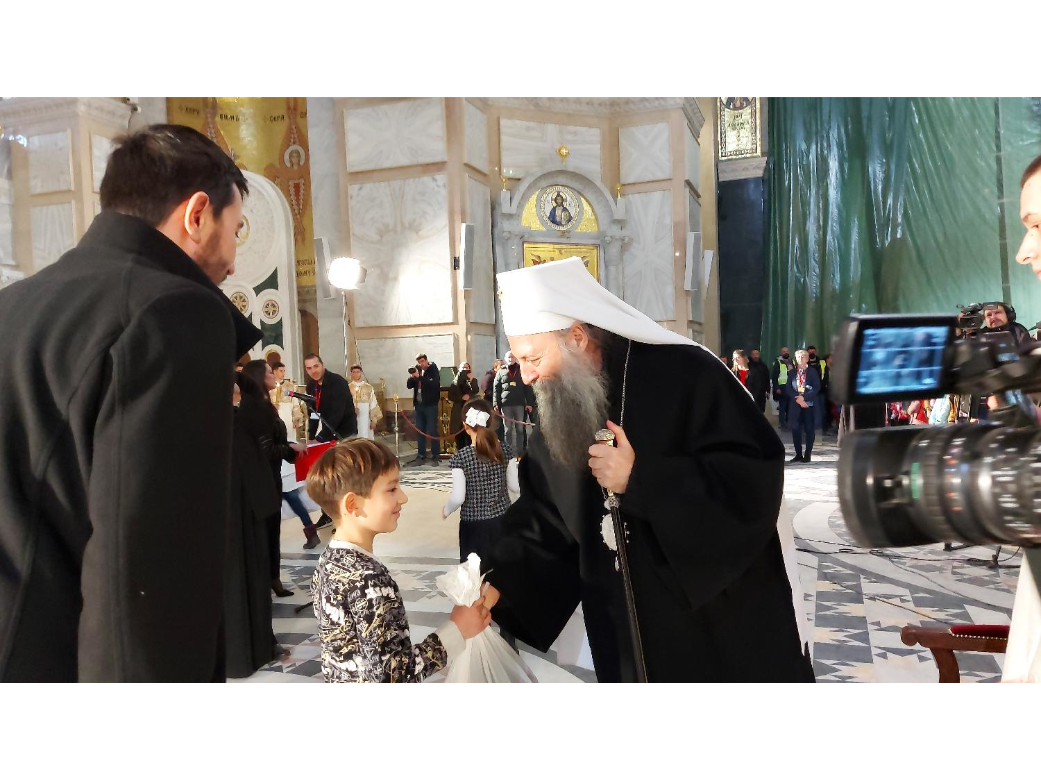"Ovo je vaša kuća, zbog vas je sazidan ovaj hram. Kada god ste uspešni i kada god je onako kako vi želite, treba uvek da uputimo blagodarnost svetom Savi, molitvu njemu blagodarnu i molitvu Bogu, ali isto tako i kada imamo nekakva neraspoloženja, kada imamo brigu i kada nam ne ide sve kako želimo, opet i svetom Savi i Presvetoj Bogorodici, i svima svetima, i Bogu treba da uputimo molitvu", poručio je patrijarh deci.