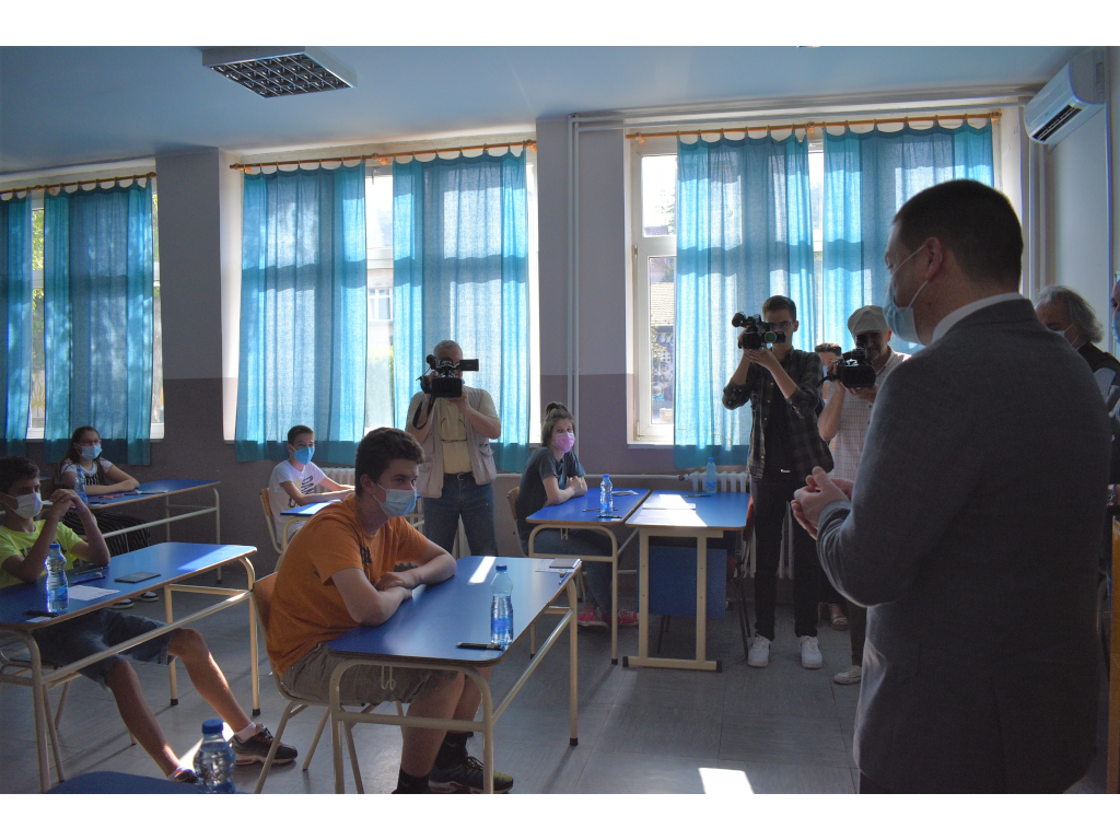 On je prethodno obišao skening centar u Osnovnoj školi „Gavrilo Princip“ u Zemunu i uverio se da je sve spremno za ovogodišnji završni ispit.