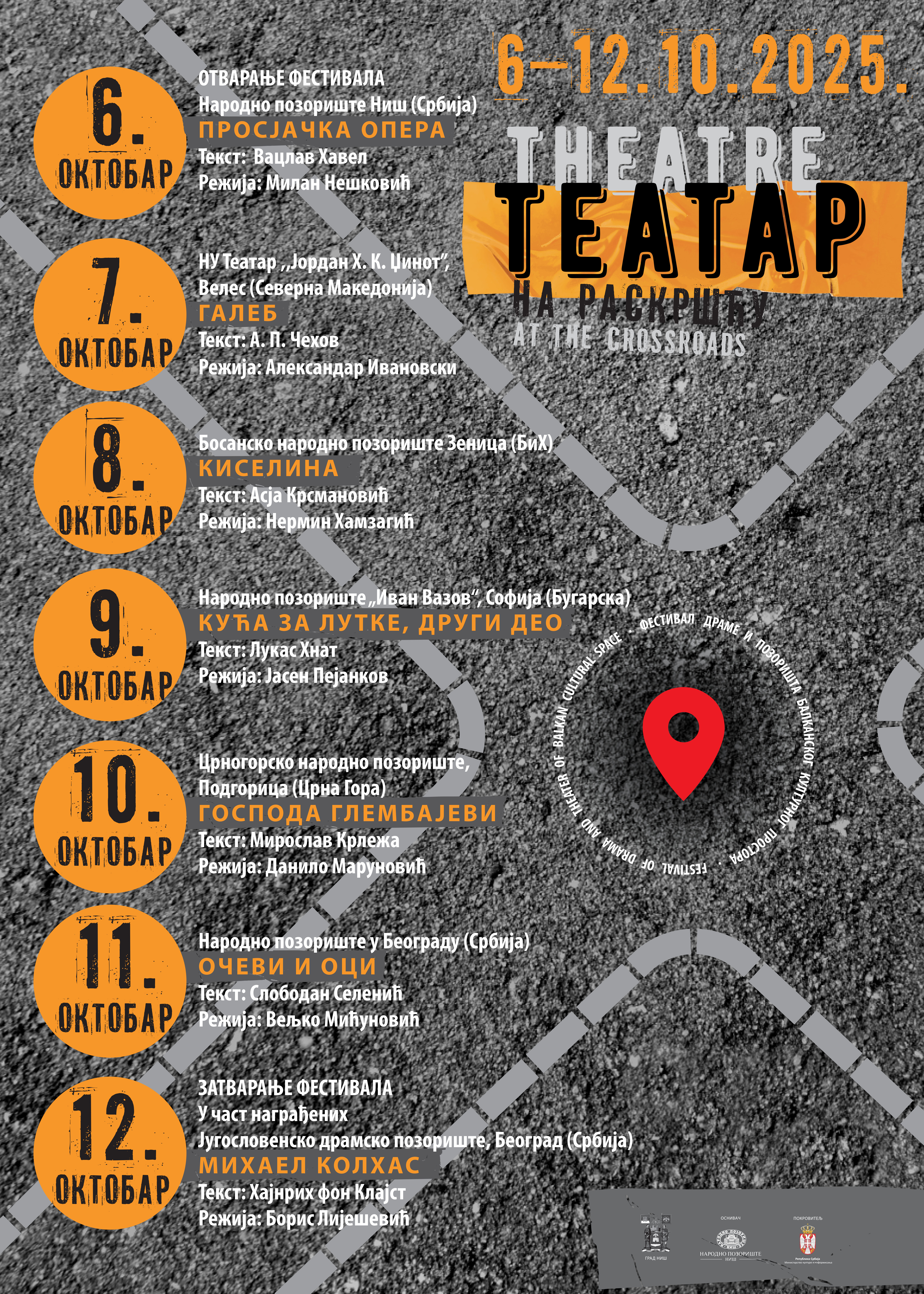 “Festival „Teatar na raskršću“ ima za cilj afirmaciju sličnosti i razlika kulturnog identiteta država i naroda koji dele isti kulturni prostor, afirmaciju države Srbije i grada Niša kao mesta raskršća evropskih i svetskih puteva, jačanje međunarodne kulturne razmene, promovisanje pozorišne umetnosti balkanskog kulturnog prostora, kao i razmenu ideja i pozorišnih praksi”, poručuju iz Narodnog pozorišta u Nišu.