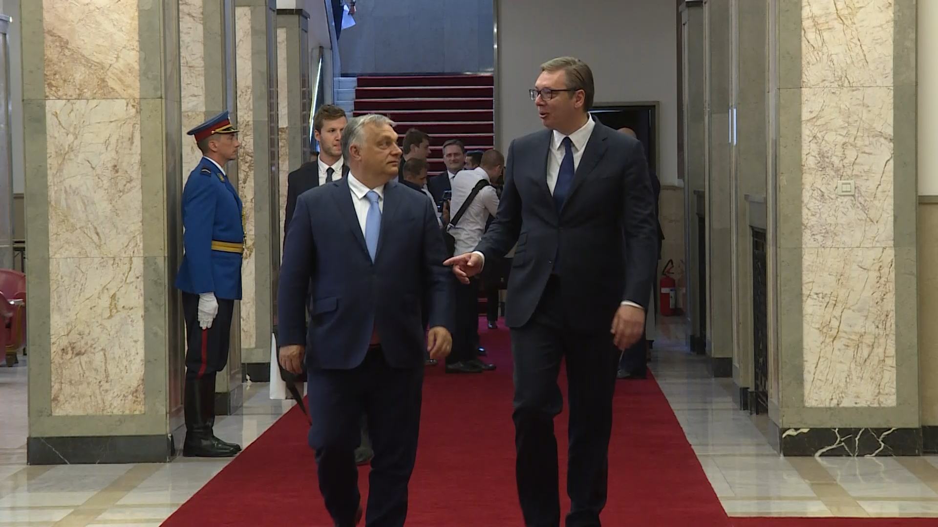 Kako je ranije najavljeno, posle razgovora u četiri oka, Vučić i Orban će prisustvovati plenarnoj sednici delegacija Srbije i Mađarske.