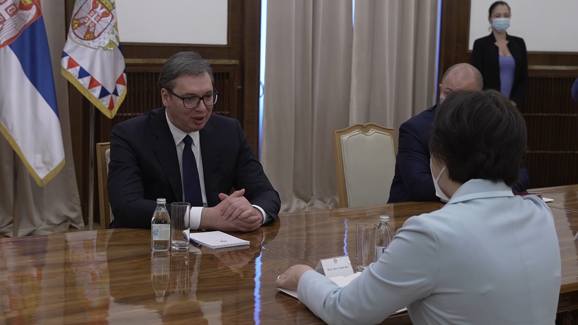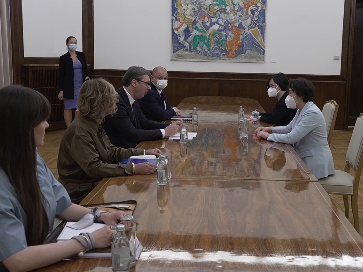 Predsednik Vučić i ambasadorka Čen su razmotrili tekuće i moguće zajedničke srpsko-kineske infrastrukturne projekte, kao i projekat izgradnje fabrike vakcina. Predsednik Vučić se posebno interesovao za projekat auto-puta Preljina-Požega, kao i pruge Beograd-Novi Sad, s obzirom na to da i auto-put i pruga treba da budu pušteni u rad početkom sledeće godine.