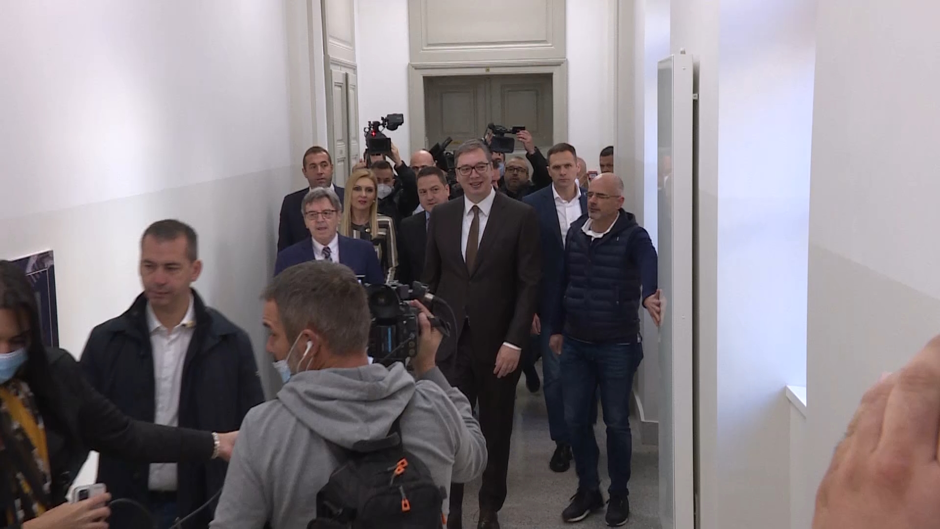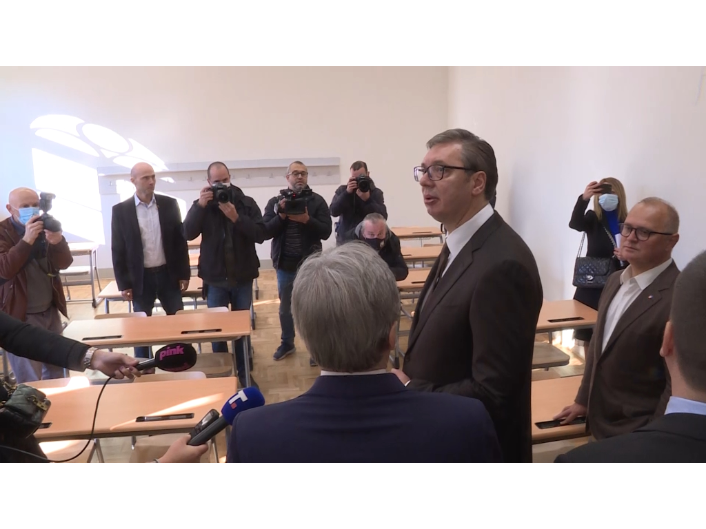 Direktor Zemunske gimnazije Miloš Bjelanović dočekao je Vučića, u čijoj su pratnji bili ministar prosvete Branko Ružić, gradonačelnik Beograda Zoran Radojičić, zamenik gradonačelnika Goran Vesić, gradski sekretar za dečju zaštitu Slavka Gaka i direktor Kancelarije za javna ulaganja Marko Blagojević.