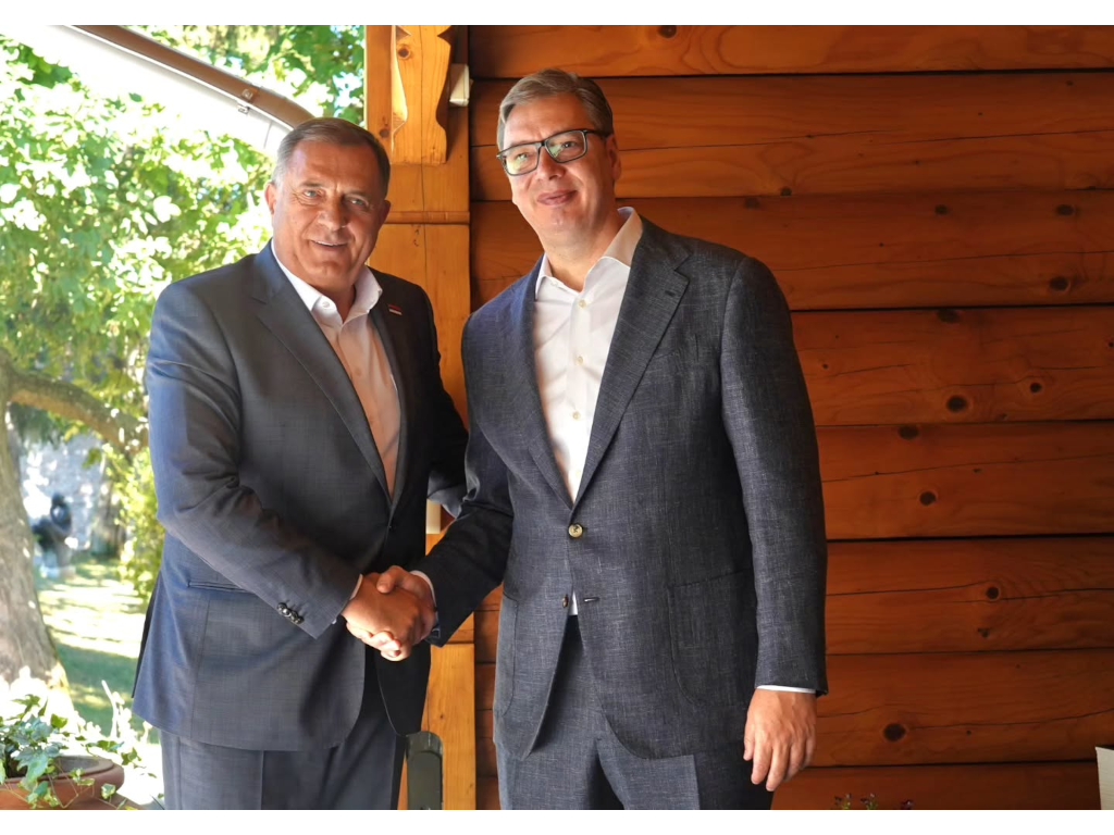 "Rehabilitacija ustaštva u regionu, pritisci stranaca u BiH i pokušaji da se destabilizuje Srbija deo su iste slike - slike u kojoj nas žele videti pognutih glava", poručio je Dodik na Instagramu nakon susreta sa predsednikom Srbije Aleksandrom Vučićem.