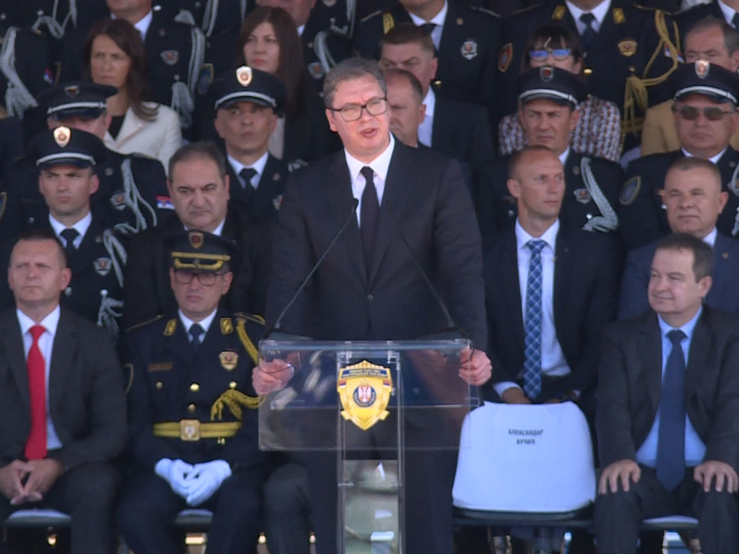 Vučić je posle centralne manifestacije u okviru obeležavanja Dana policije i Dana Ministarstva unutrašnjih poslova, rekao novinarima da je Srbija reagovala mirno i da nikoga nije pomenuo.