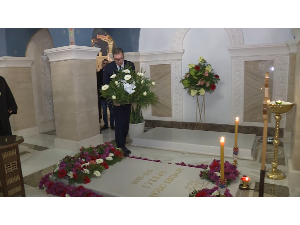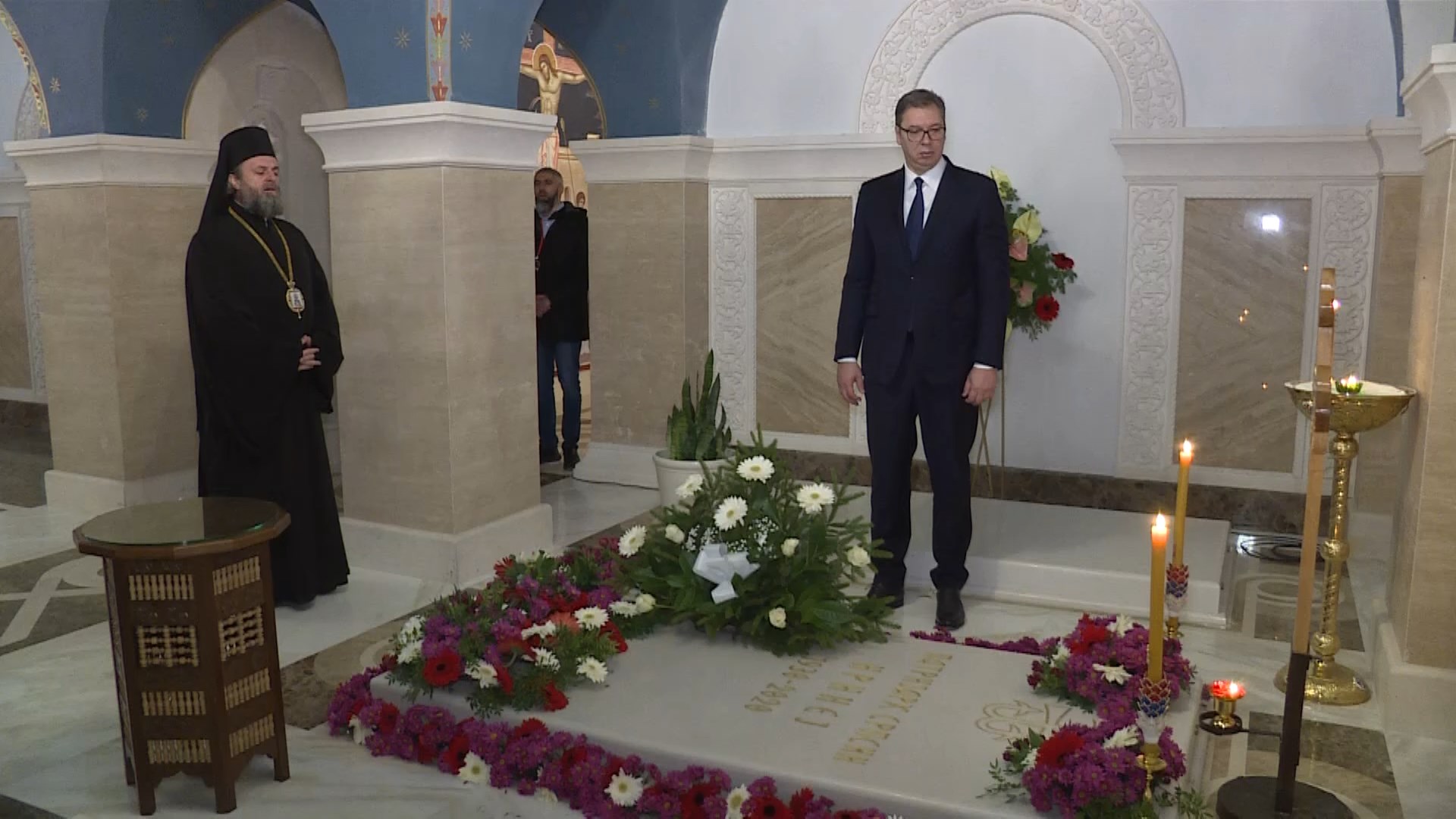 "Ja znam da je ponosan na to što se pod kupolama našeg velelepnog hrama sada sve više sabira verni narod, ali i ljudi svih vera i nacija koji dolaze iz celog sveta kako bi se divili veličanstvenim mozaicima i monumentalnoj lepoti našeg i njegovog hrama. Neka počiva pred prestolom oca nebeskog naš dobri, skromni i veliki patrijarh", dodao je Vučić.