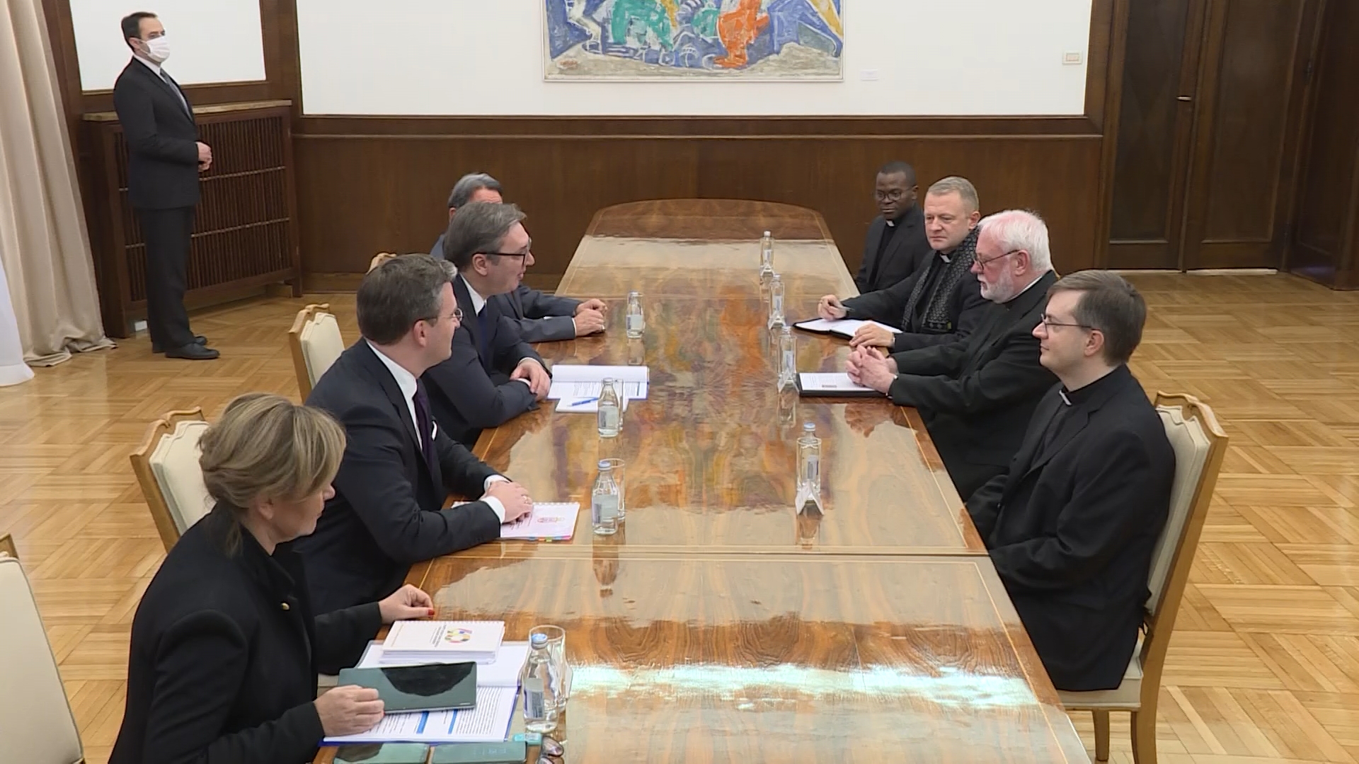 Kako se navodi u saopštenju kabineta predsednika, Vučić je izrazio zahvalnost Vatikanu na značaju koji pridaje odnosima sa Srbijom, kao i na poštovanju teritorijalnog integriteta Srbije kroz principijelan stav o nepriznavanju jednostrano proglašene nezavisnosti Kosova.