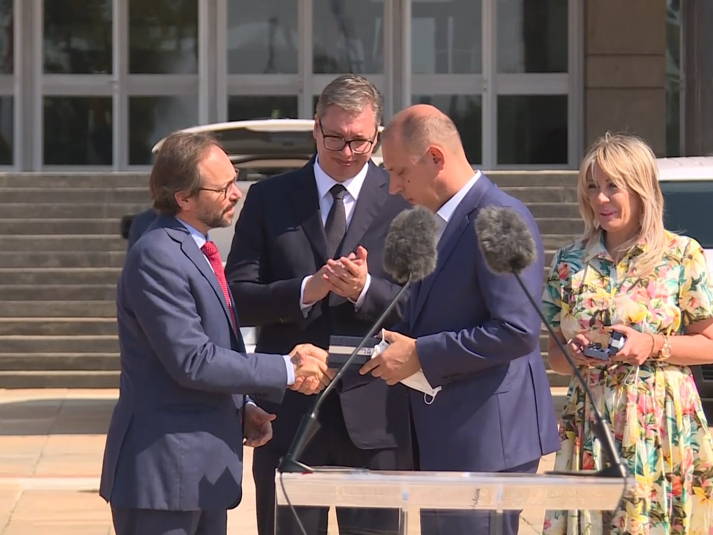 On je rekao da Srbija zahvaljujući vozilima koje je dobila od EU neće više morati da iznajmljuje vozila za transport vakcina i da će za 10 do12 sati vakcine moći da budu isporučene u bilo koji kraj Srbije zahvaljujući ovom projektu EU, "čime je rešen značajan problem s distribucijom vakcina širom Srbije".