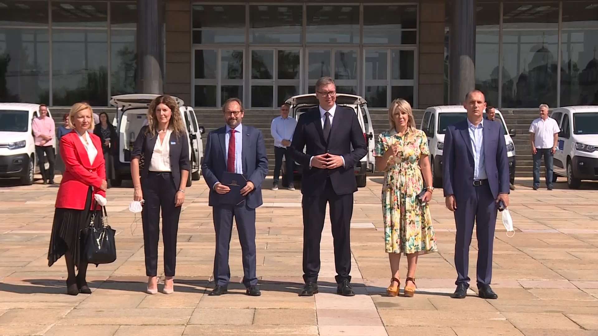 Vučić je precizirao da će 26 danas dobijenih vozila biti upućena u 24 opštine Srbije i istakao da je pomoć EU, samo u ovom projektu vredna više od 600.000 evra.