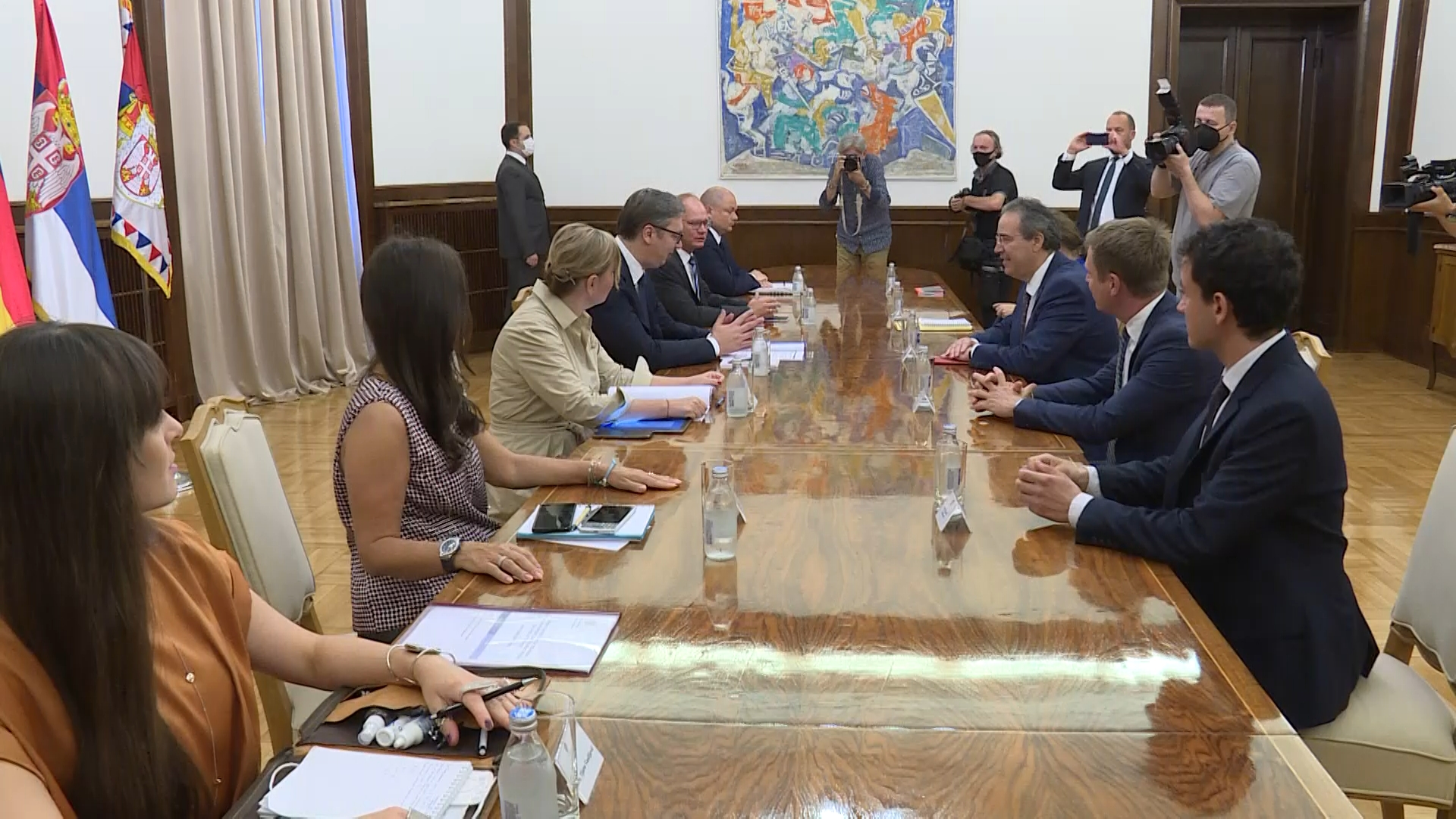 Vučić je izrazio očekivanje da će Nemačka pružiti konstruktivnu podršku dijalogu Beograda i Prištine i pronalasku kompromisnog rešenja koje će zadovoljiti interese obe strane i omogućiti trajnu stabilnost regiona uz primenu postojećih dogovora, saopšteno je kabineta predsednika Srbije.