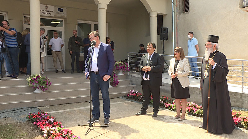 Predsednik Srbije posetio je i Rekovac gde je obišao rekonstruisani Dom kulture, koji je obnovljen posle skoro pet decenija. Dočekan je tradicionalno, uz so i pogaču, a dobrodošlicu su mu poželeli i najmlađi članovi KUD "Levač" iz Rekovca. Vučić je okupljenim građanima poručio da ima nekoliko dobrih vesti za njih, jer će se raditi put ka Kragujevcu, kao i nova kanalizaciona mreža, dodajući da je najvažnije da se nađe neki manji investitor za Rekovac.
