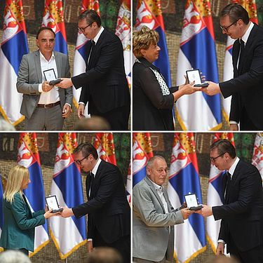 Predsednik Vučić je laureatima poručio da budu ponosni na ono što pružaju svom narodu i državi i dodao da među dobitnicima nisu ljudi koji su slični prema onome što misle, ali ljudi koji su svako iz svoje oblasti zaslužili i više od priznanja.