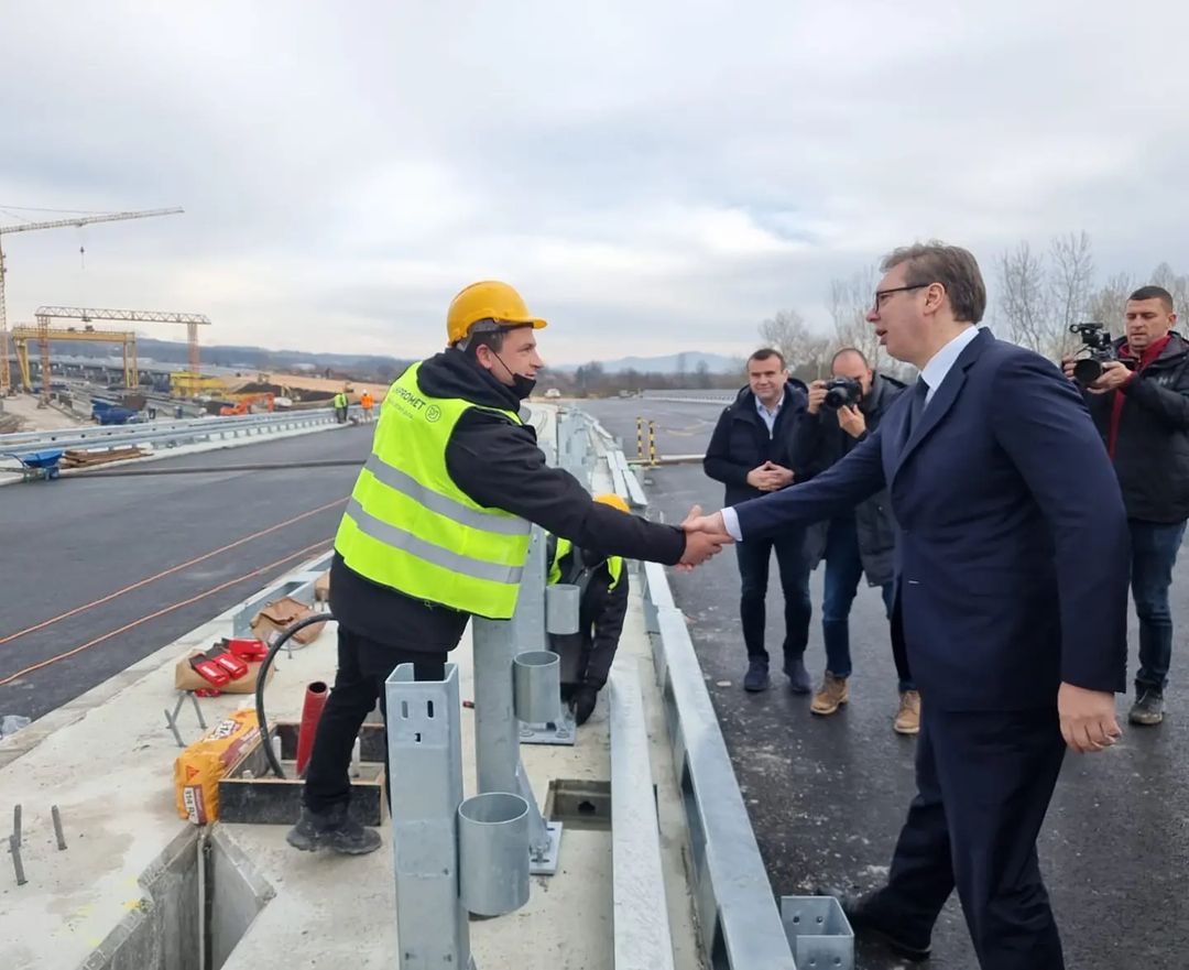 Vučić je radove posetio zajedno sa ministrom građevinarstva, saobraćaja i infrastrukture Tomislavom Momirovićem, direktorima preduzeća "Koridori Srbije" i "Putevi Srbije" i ambasadorkom Kine u Beogradu Čen Bo.